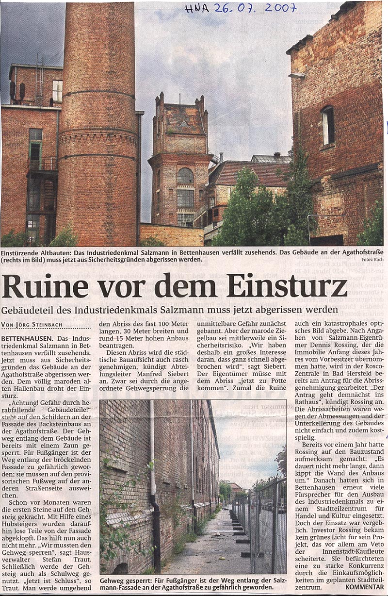 Fabrik SALZMANN & COMP. Kassel / Pressearchiv / 26.07.2007