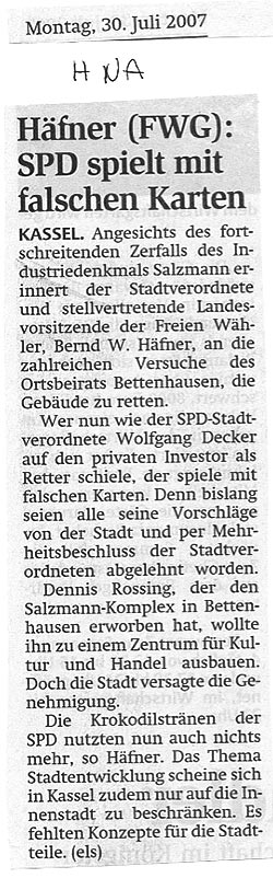 Fabrik SALZMANN & COMP. Kassel / Pressearchiv / 30.07.2007