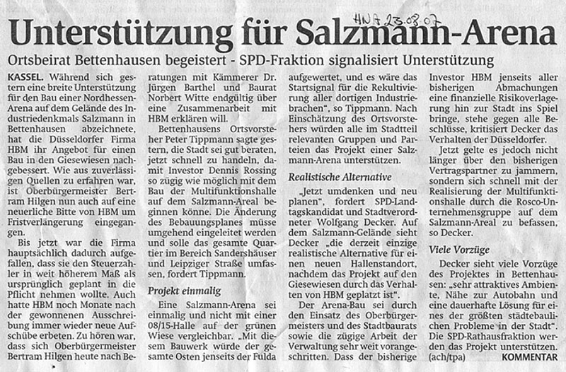 Fabrik SALZMANN & COMP. Kassel / Pressearchiv / 23.08.2007
