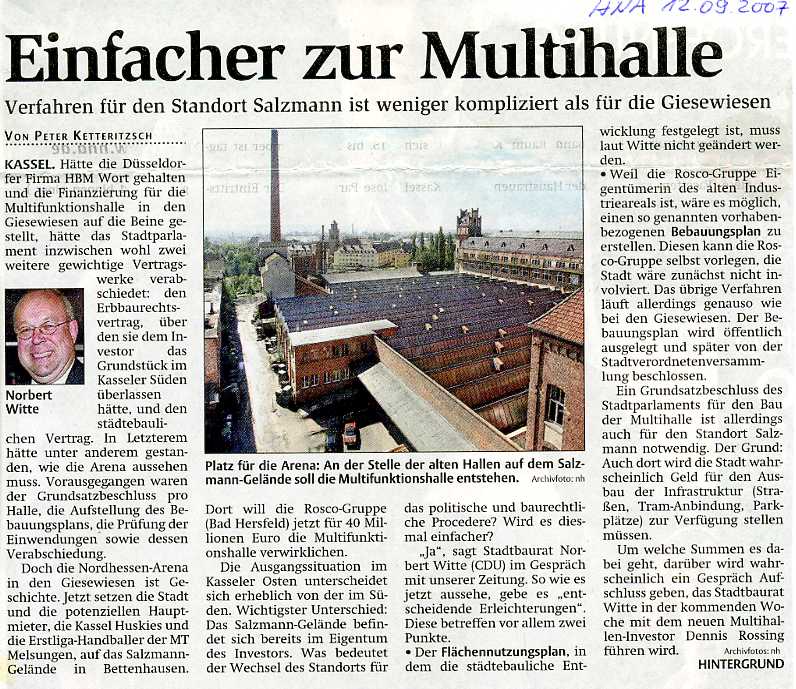 Fabrik SALZMANN & COMP. Kassel / Pressearchiv / HNA 12.09.2007